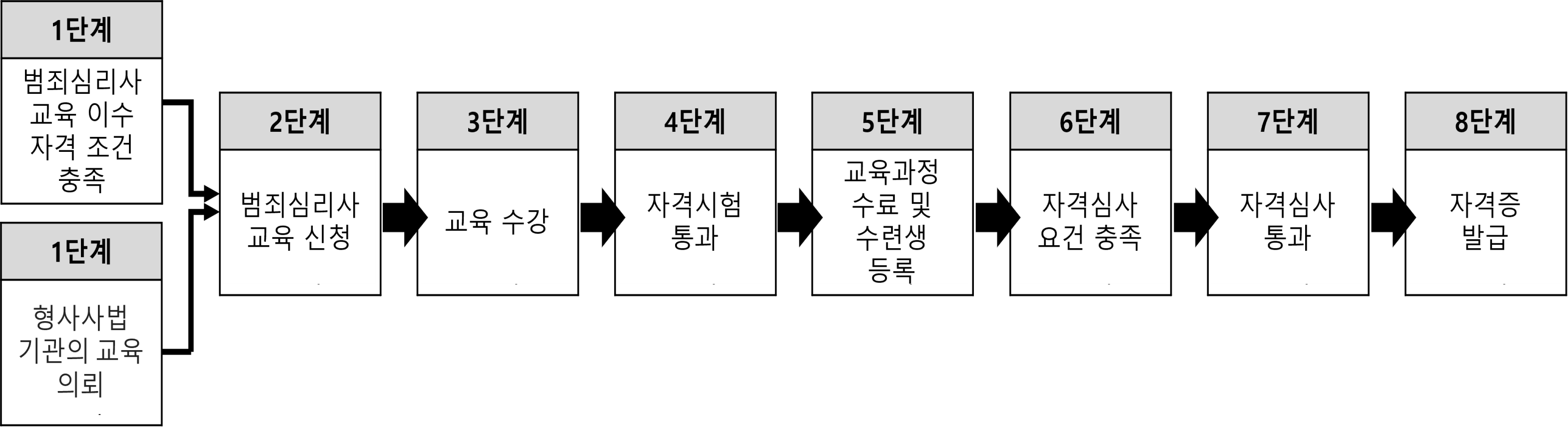 1단계: 범죄심리사 교육 이수 자격 조건 충족 (전문가 과정 및 1급 과정)